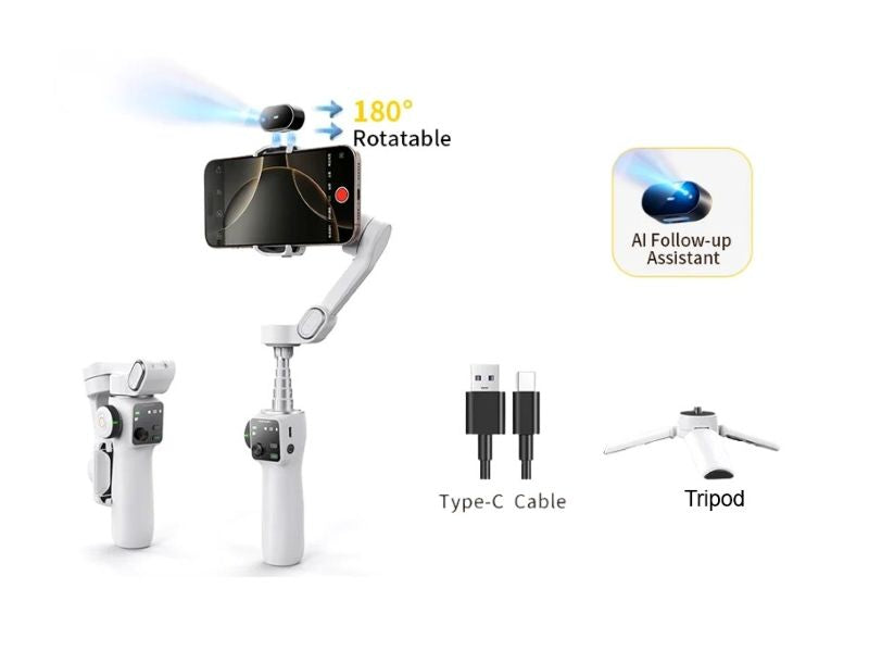 Regular price €75,99Sale price €75,99 Regular price €87,99Unit price / perINFORMATIVE IMAGES: AI Gimbal Tripod Jumping Selfie Stick 360° Auto Follow - Up Face Auto Pop Up Tracking Gimbal All-in-One Holder for Smartphone