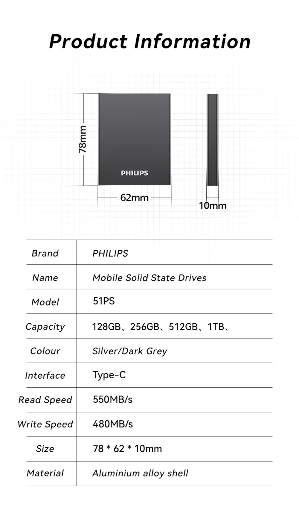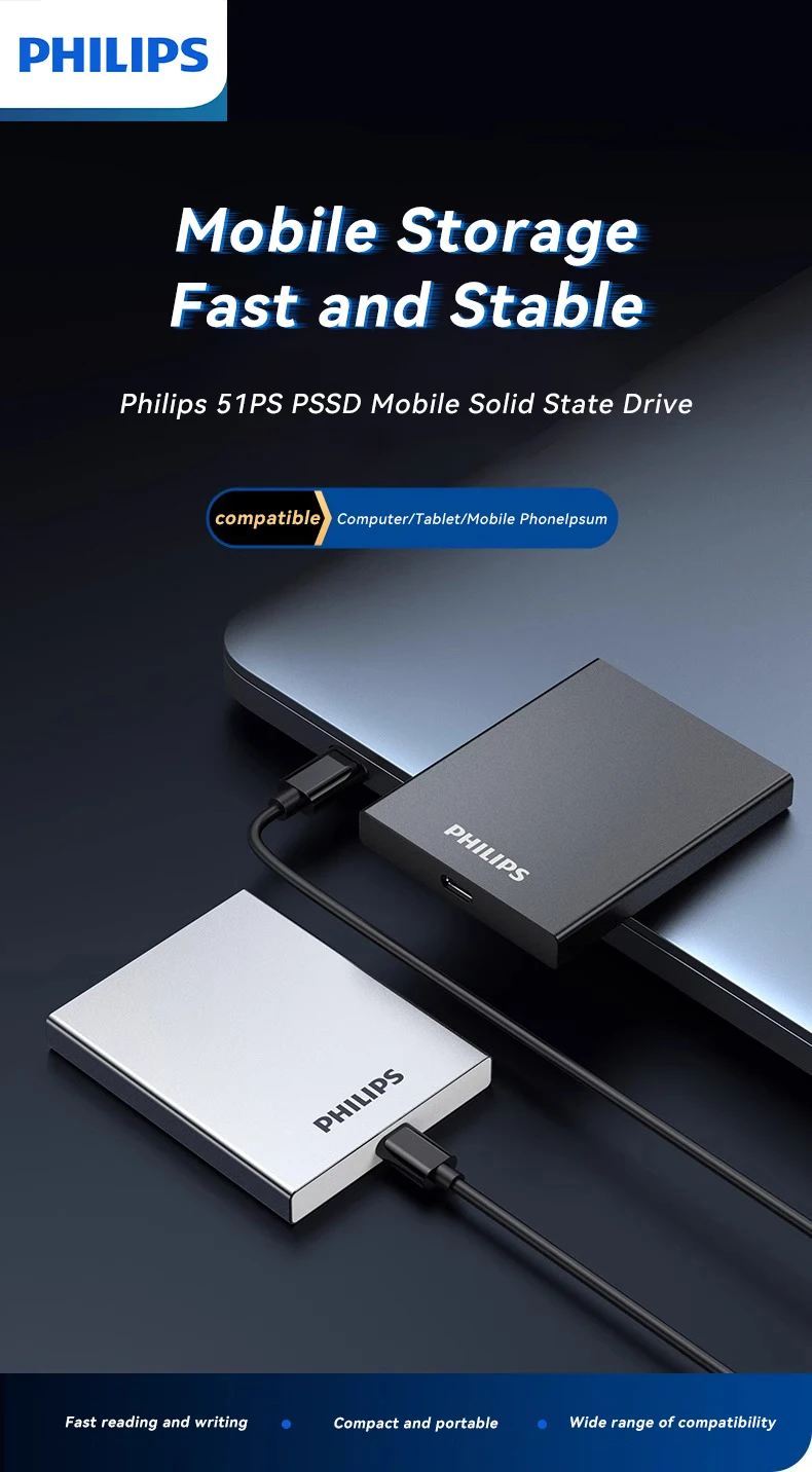 PHILIPS 51PS Portable SSD – Fast, Durable Storage for Creators & Gamers