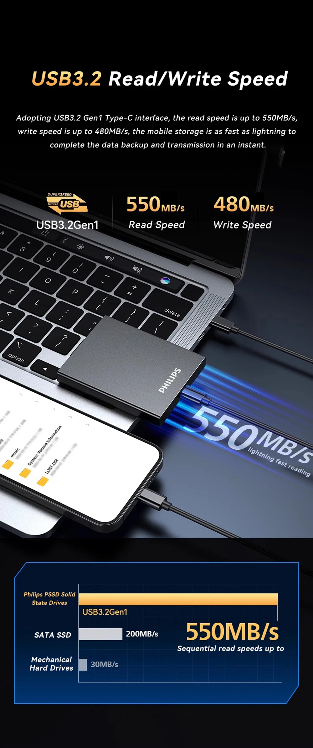 • Read/Write Speed: Up to 550 / 480 MB/s
