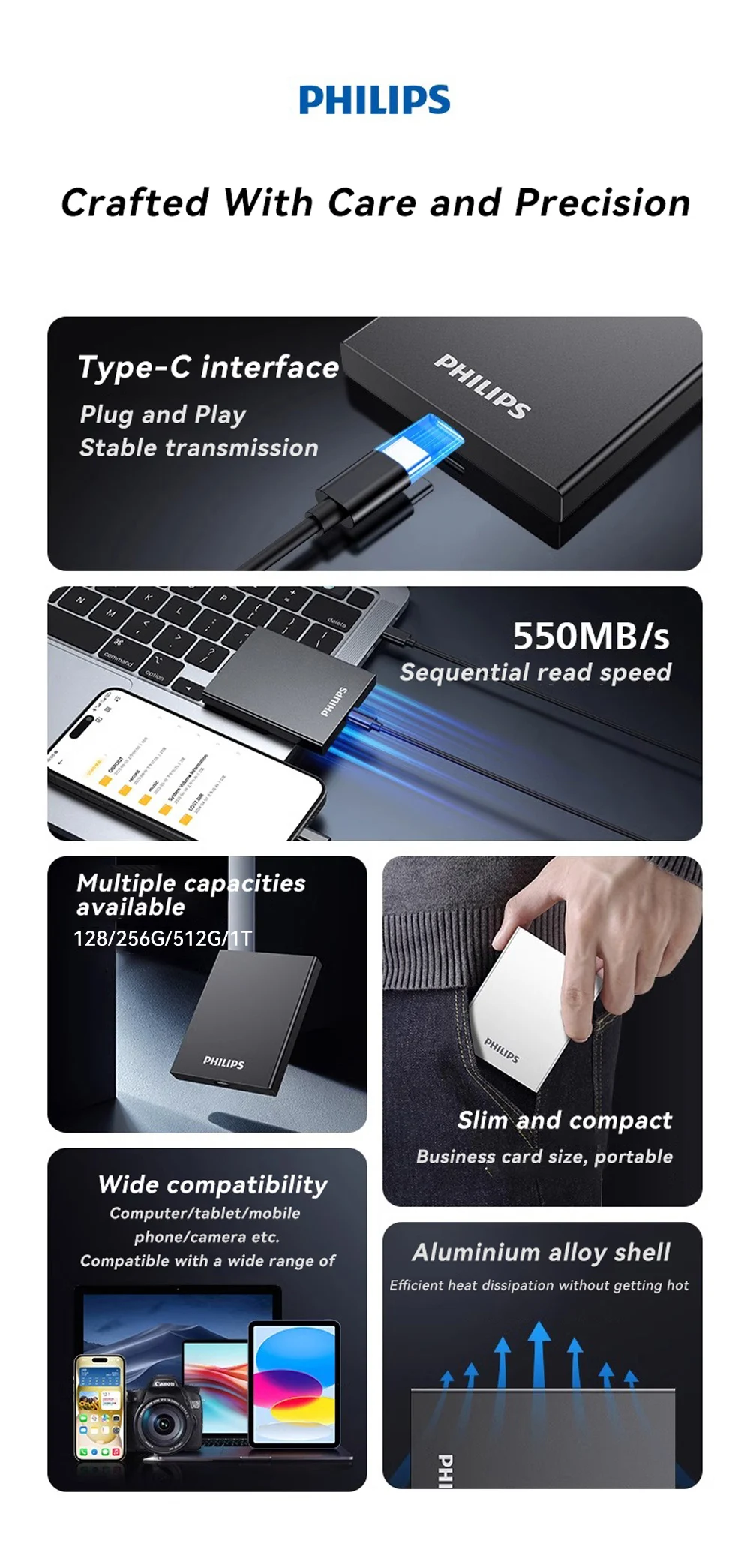 The PHILIPS 51PS Portable SSD is built for makers, photographers, gamers, and content creators who need reliable, high-speed storage wherever life takes them. With blazing transfer speeds, rugged construction, and a compact form factor, the 51PS is the ultimate companion for your digital workflow.