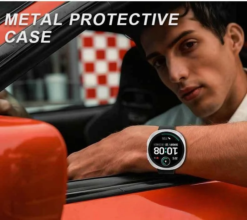 Integrated tempered glass screen protector safeguards your watch face from scratches and impacts.