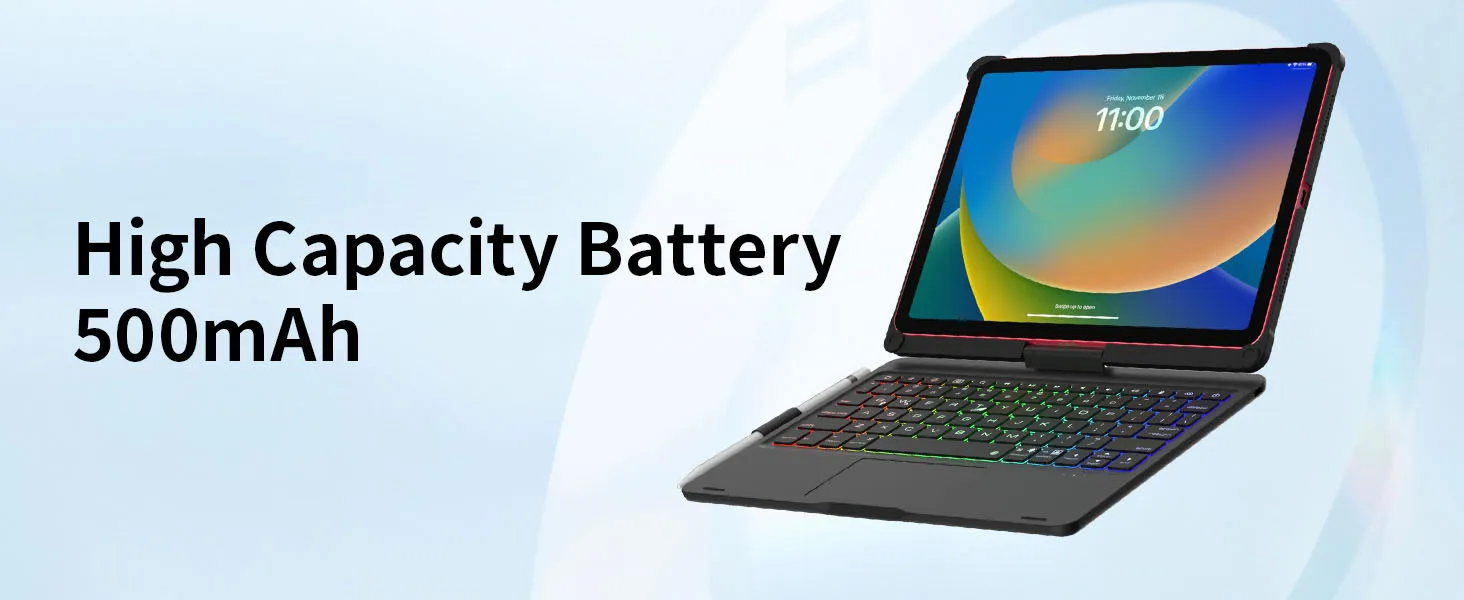 Premium hard-shell design protects all sides of your iPad; auto sleep/wake initiates when keyboard case is opened & closed to conserve battery life, holder for Apple Pencil so it won't get lost or in the way.
