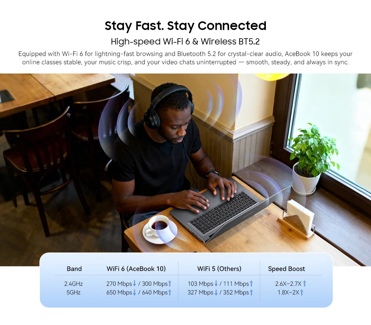 Wi – Fi & BT: IEEE 802.11 a/b/g/n/ac/ax (Wi - Fi 6); BT 5.2