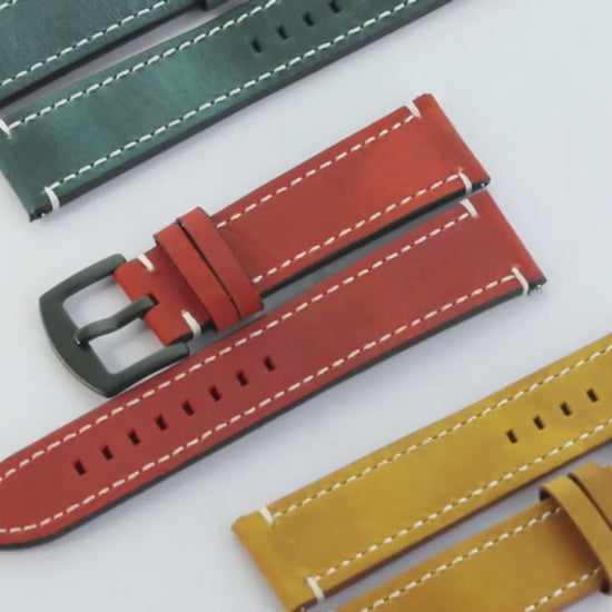 ⌚Crazy horse leather watch strap, Button: The 316L stainless steel, anti-allergy, precision polishing technology, beautiful appearance, durable, simple and elegant hollow device, double click the For Switch to make the firm more smoothly close. quick release spring bars Include 2pcs spring bars.