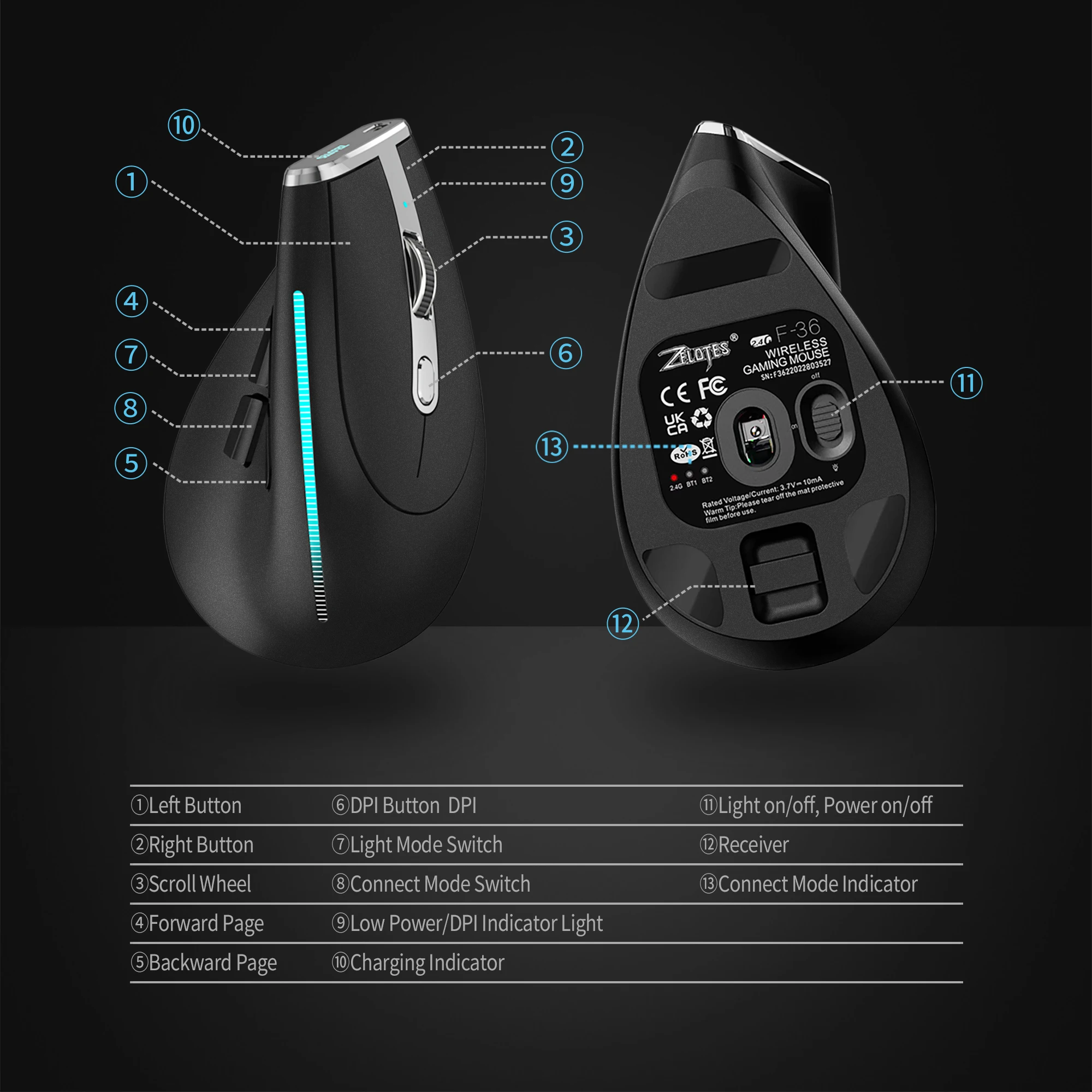 Function: Ergonomic Bluetooth wireless mouse, protect wrist