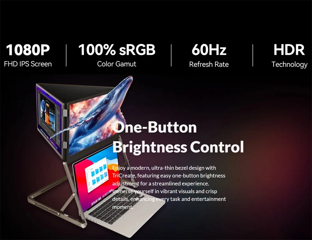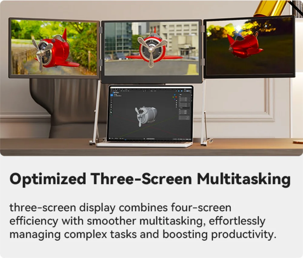 ⚠️Easily connect three external monitors with one cable: Type-C or USB-A + HDMI.