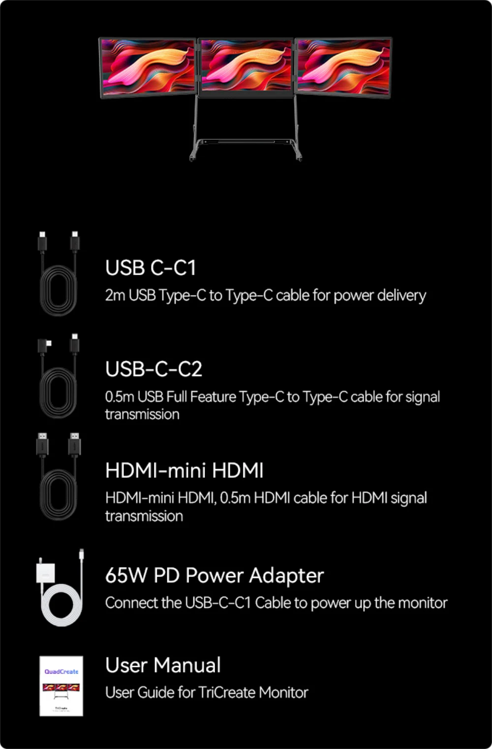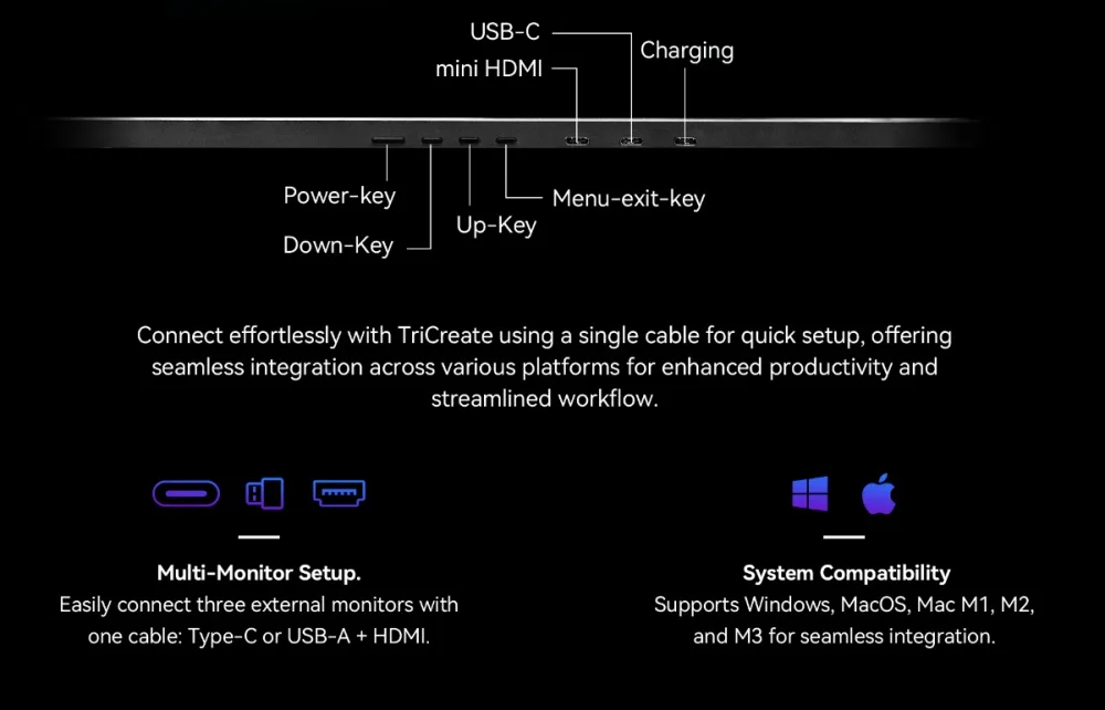 ⚠️Connect effortlessly with TriCreate using a single cable for quick setup, offering seamless integration across various platforms for enhanced productivity and streamlined workflow.