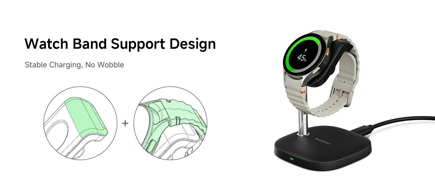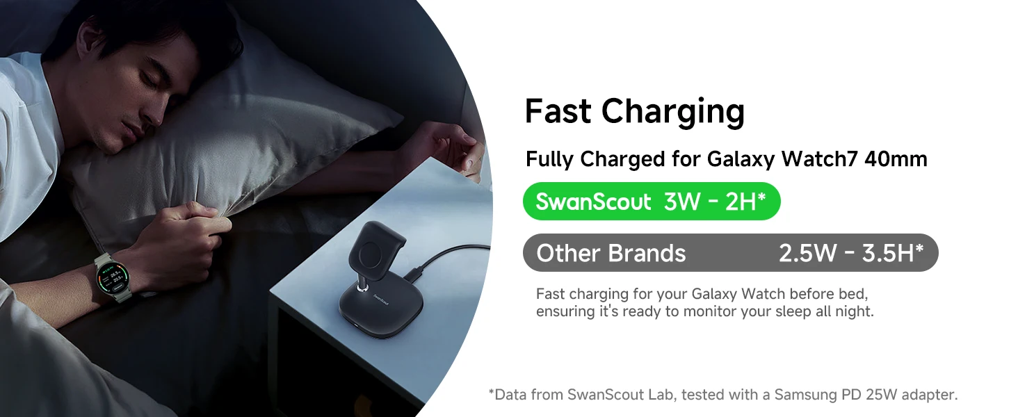 SwanScout 505S Fast Charging Stand for Samsung Galaxy Watch 8 Classic / FE / 7 / 6 / 5 / Pro 4 / 3 / Active 2 Charger for Galaxy Watch Ultra